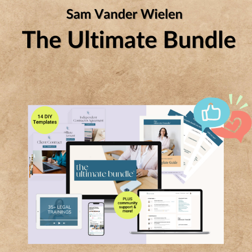 The Ultimate Bundle comprises various components that cumulatively offer a well-rounded foundation for building a successful business. The resources included are curated based on Sam Vander Wielen’s expertise in business law and online entrepreneurship.